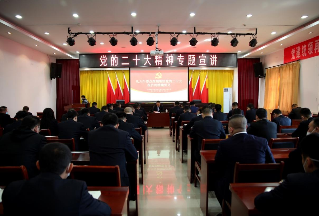 黨的二十大勝利召開后,長(zhǎng)春興煤業(yè)黨支部書記。董事長(zhǎng)趙廷龍帶頭學(xué)習(xí)黨的二十大精神,為黨員干部員工進(jìn)行專題宣講。