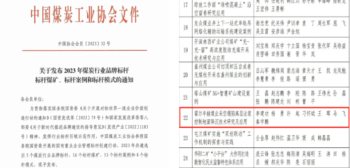 近日,中國煤炭工業協會公布2023年煤炭行業“品牌標桿”“標桿煤礦”“標桿案例”和“標桿模式”。此次共評選出5個煤炭行業品牌標桿、16個標桿煤礦、53個標桿案例和8個標桿模式。其中,山煤國際霍爾辛赫煤業《霍爾辛赫采空塌陷離層注漿控制地面沉降技術研究及應用》項目獲評2023年全國煤炭行業標桿案例。